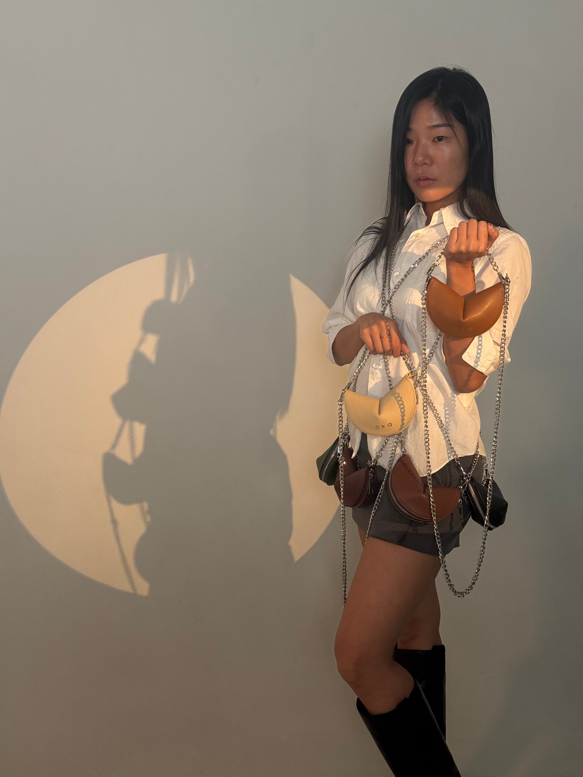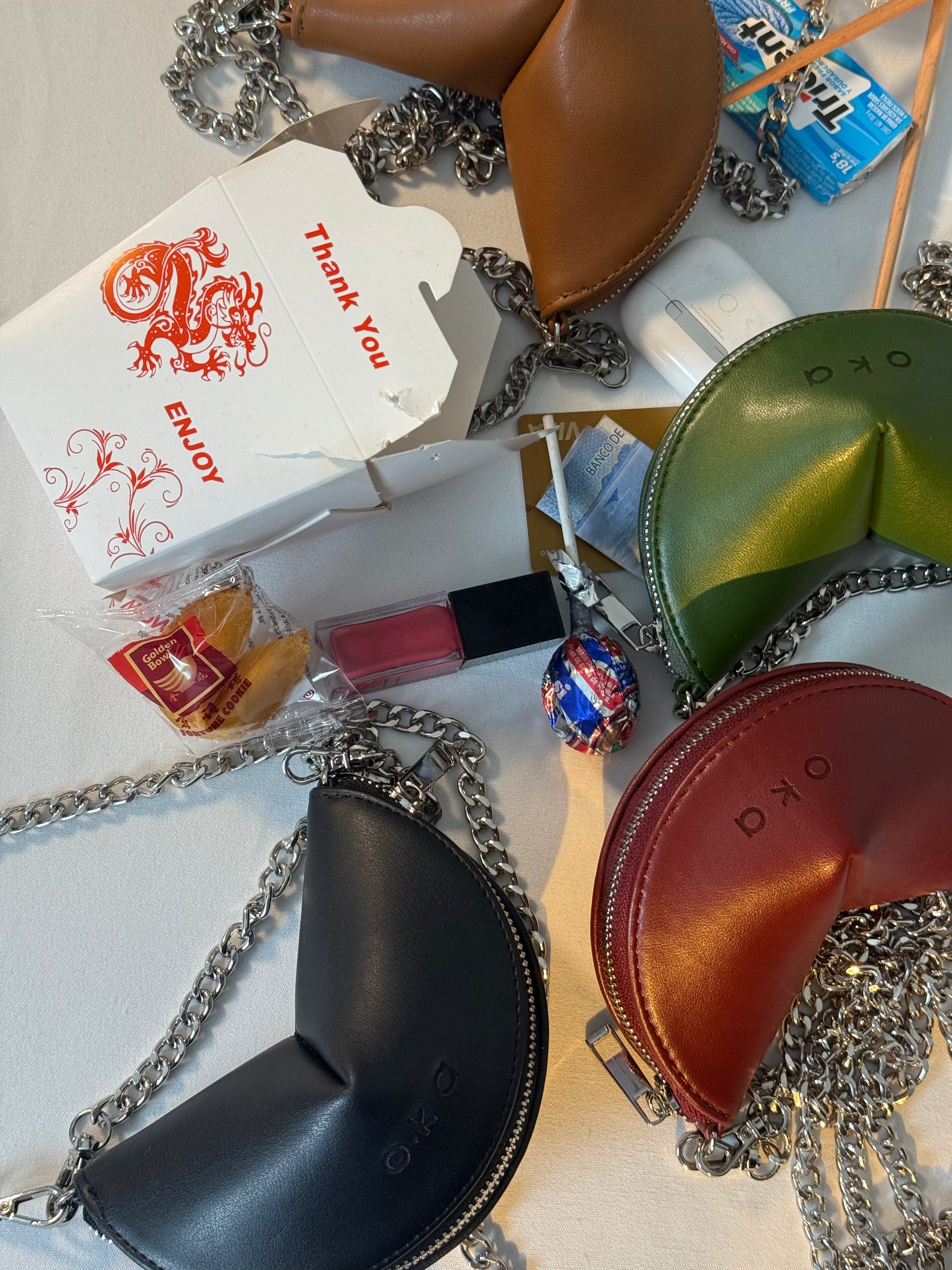 No es una galleta, pero trae suerte. Inspirado en la clásica fortune cookie, esta bolsa está hecha con piel de nopal y diseñada para atraer buena energía a donde vayas.